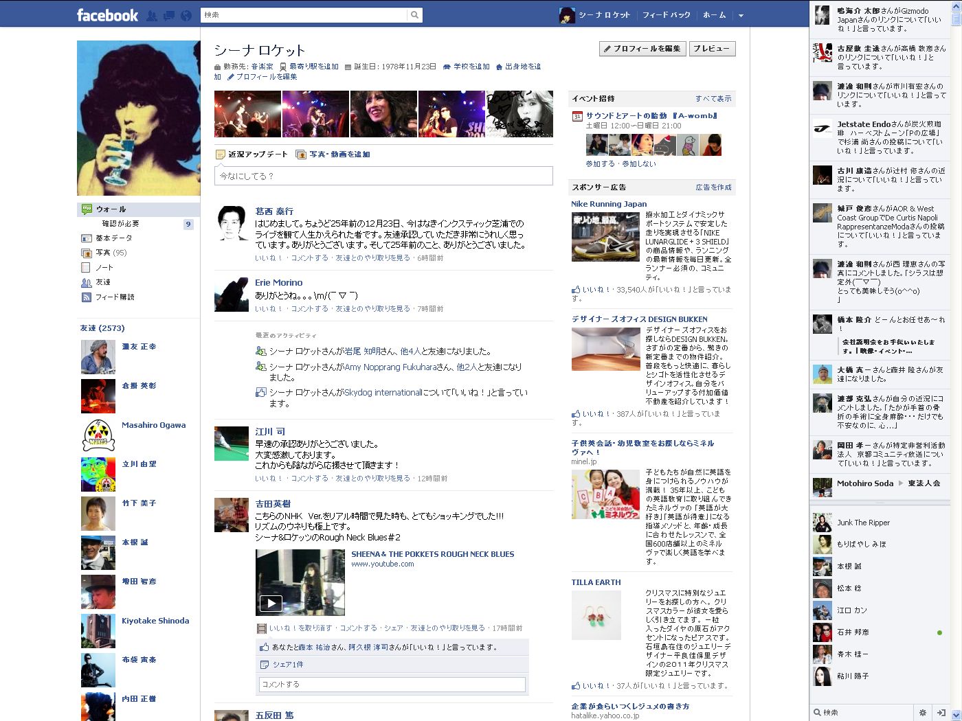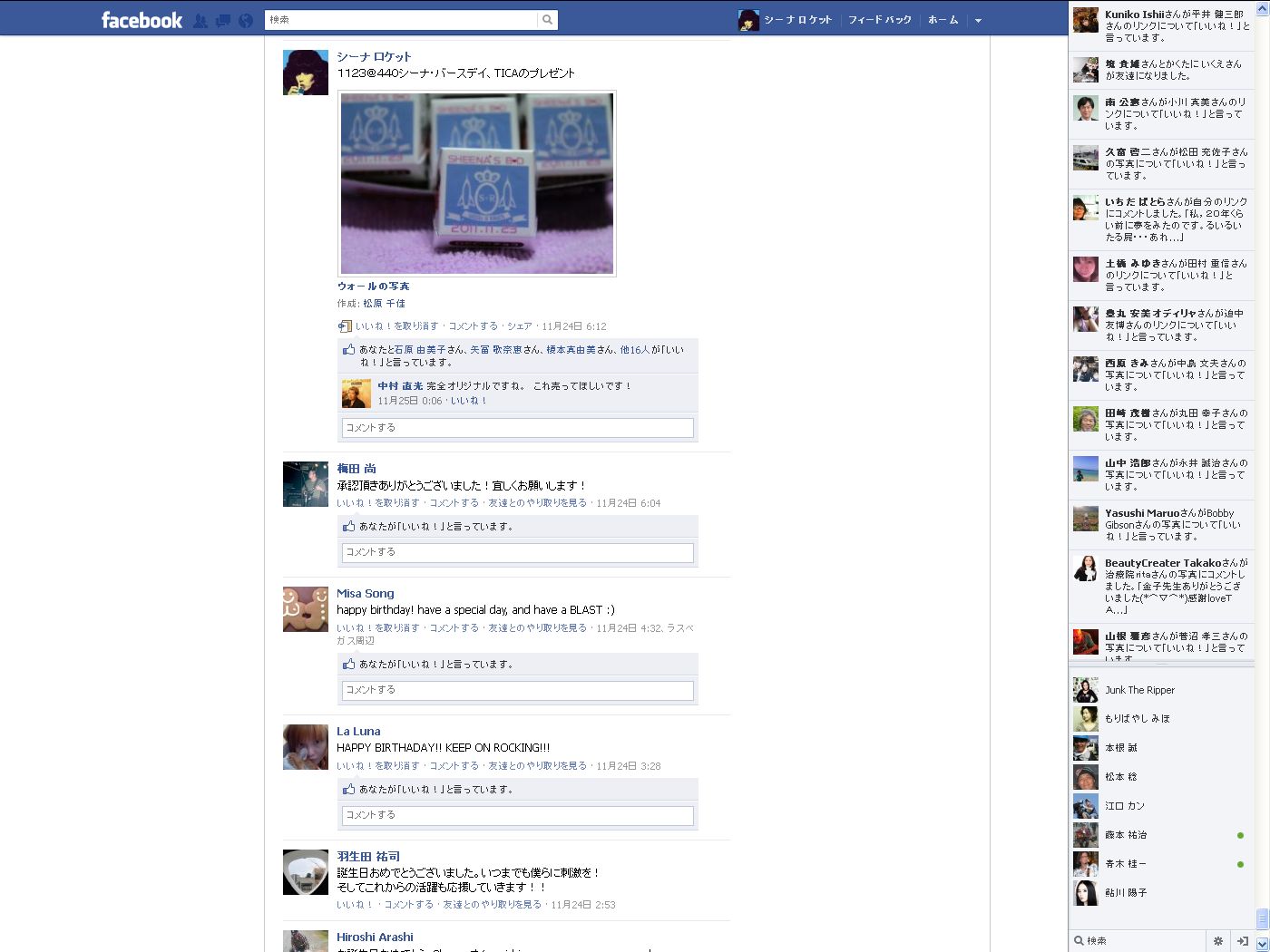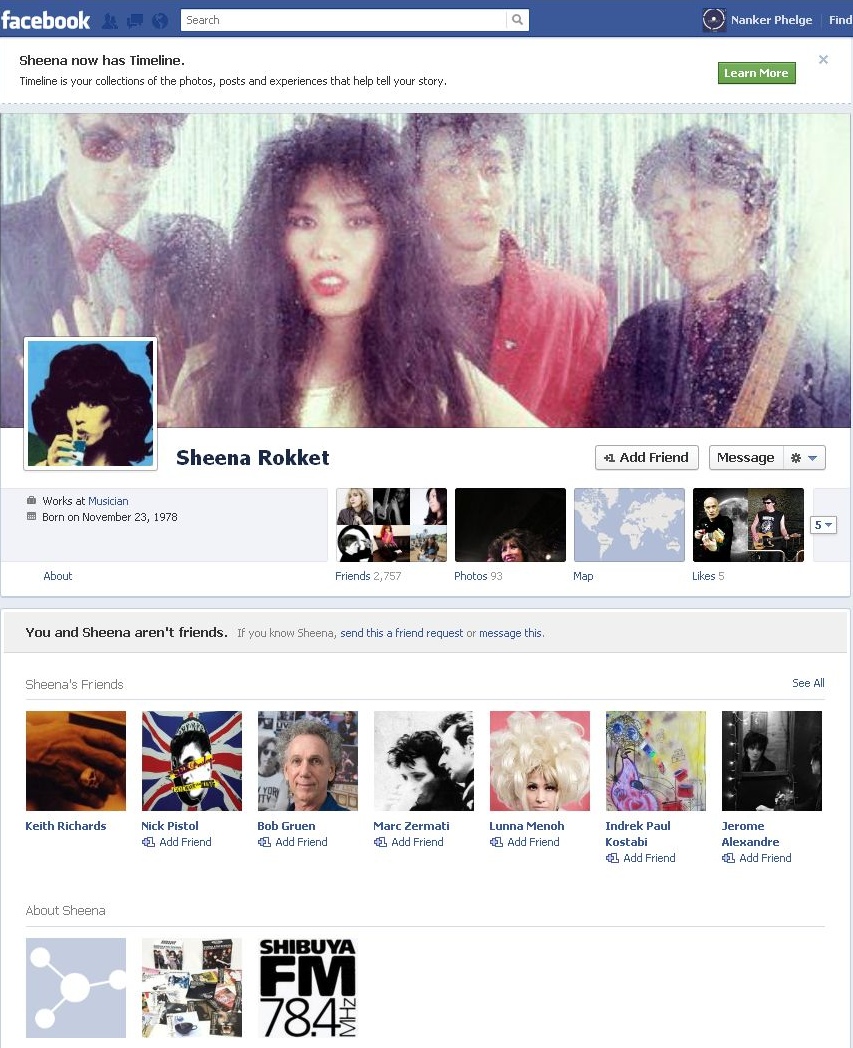 シーナとキースがフェイスブックで友達になりました! -2011年12月18日 09:09:999