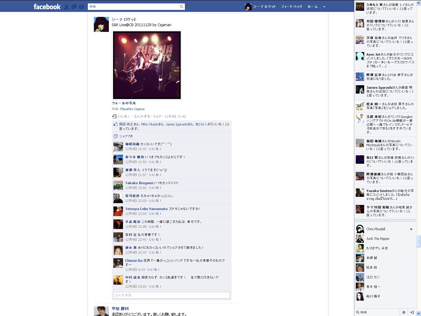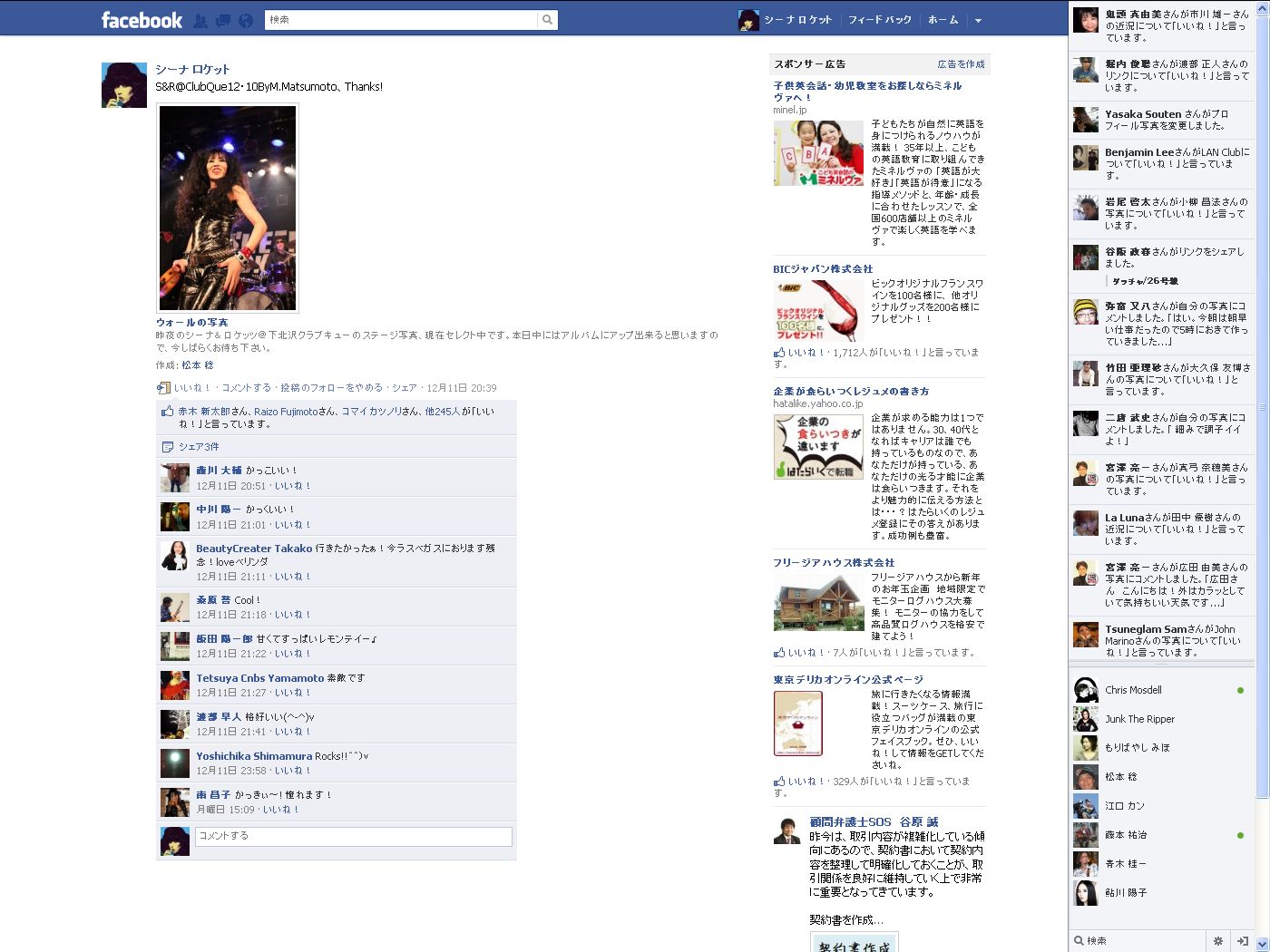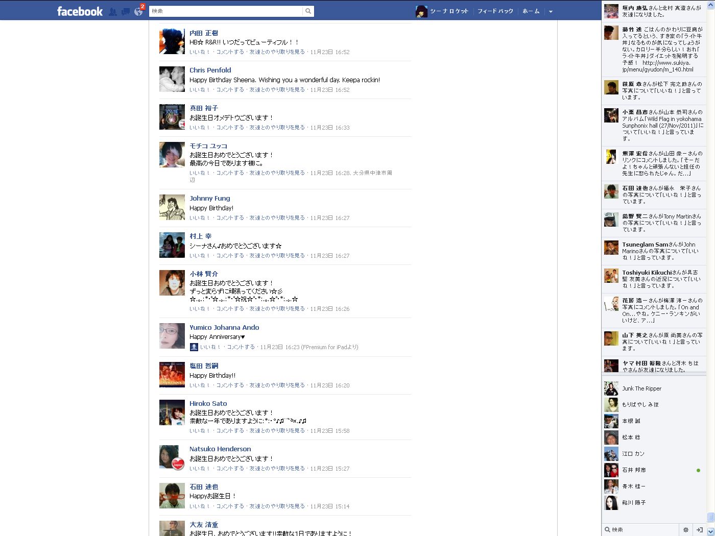 シーナとキースがフェイスブックで友達になりました! -2011年12月18日 09:09:999
