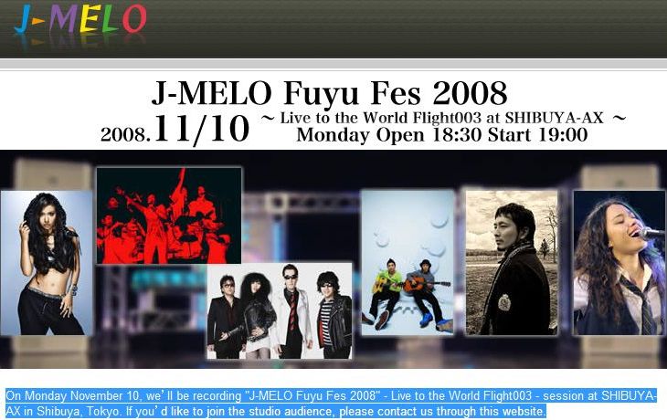 出演 SHEENA & THE ROKKETS /Orquesta de La Luz /DEPAPEPE /Jazztronik /May J. /Shanti Futher Information to be come 問い合わせ: J-MELO/ NHK WORLD